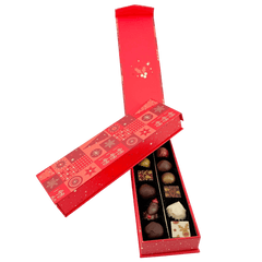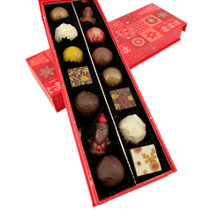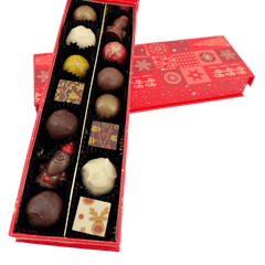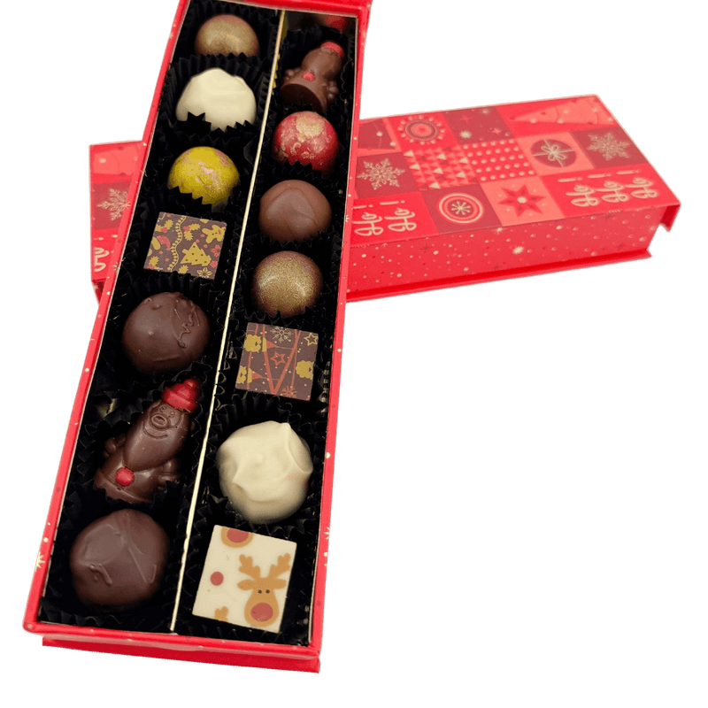Eine fröhliche Weihnachtsgeschenkbox mit 14 Pralinen und Trüffeln (225g), handgefertigt in Belgien. Unsere Ho-Ho-Ho Edition ist eine köstliche Art, den Zauber von Weihnachten zu teilen.