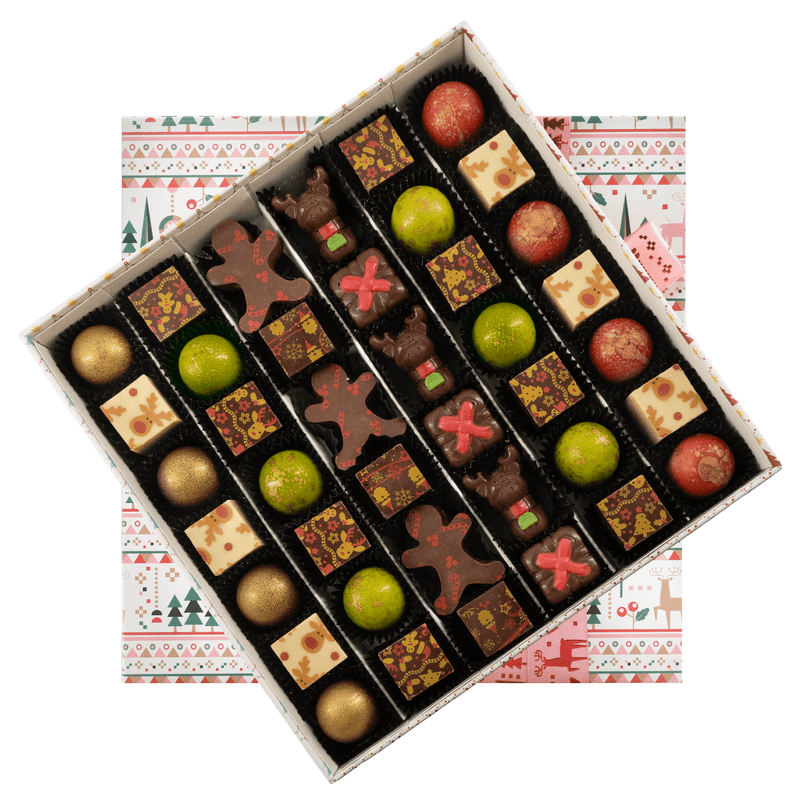 Step into the magic of our Christmas winter wonderland box with 40 handcrafted Belgian pralines (590g). A festive, elegant selection of bean-to-bar creations, perfect for gifting and celebrating the season in true Belgian chocolate style. ☃️