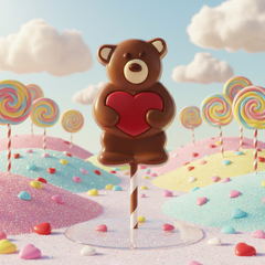 Unser Teddybär-Lolli mit rotem Herz aus Milchschokolade (20 g) wird in Brüssel aus ethischer Bohnenschokolade handgefertigt und schmeckt einfach köstlich. Ein süßer belgischer Genuss, der mit jedem Bissen die Herzen zum Schmelzen bringt.