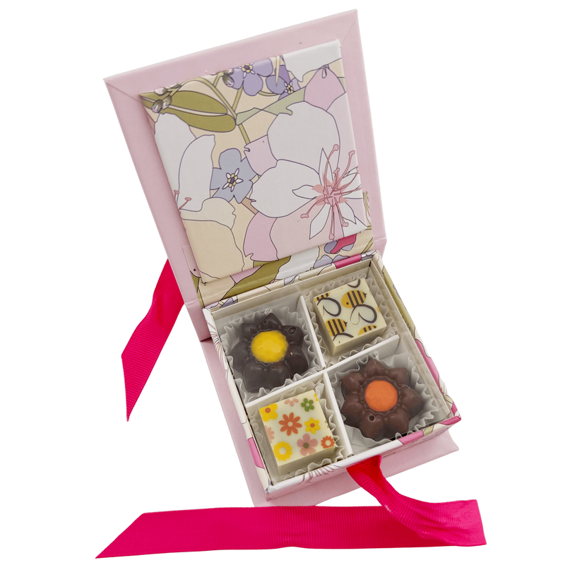 Feiern Sie den Frühling mit unserer 50g Schachtel mit verschiedenen belgischen Pralinen, handgefertigt in Brüssel aus ethischer Bohnenschokolade. Ein zartes, saisonales Geschenk voller Frische und handwerklichem Geschmack.