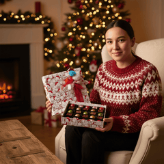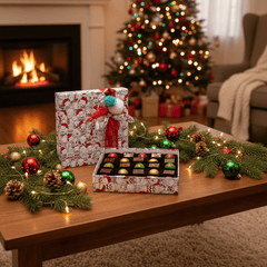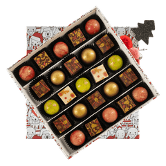 Célébrez les fêtes avec notre coffret de Noël de 25 pralines belges, un élégant assortiment de chocolats artisanaux fabriqués avec du cacao de première qualité, parfaits pour offrir ou partager de doux moments festifs avec ceux que vous aimez.