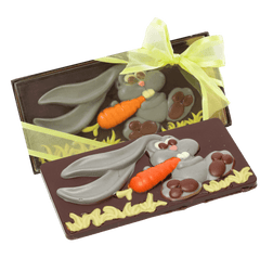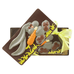 Délectez-vous de notre lapin de Pâques en chocolat noir de 100 g, fabriqué à la main en Belgique avec du cacao doux et crémeux, une charmante friandise de Pâques qui allie tradition et gourmandise.