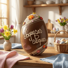 Celebrate Easter with the delicious Joyeuses Pâques milk chocolate Easter egg 800g, crafted from smooth and creamy premium milk chocolate. This elegant Easter egg offers a rich, velvety flavor and a silky texture that melts beautifully in your mouth.