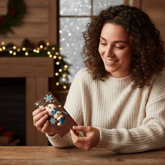 Embrassez la saison avec notre barre de chocolat au lait hiver 120g, fabriquée à la main à Bruxelles par des artisans chocolatiers certifiés. Fabriquée à partir de cacao doux, éthique et traçable, une gâterie de chocolat belge confortable pour les froides journées d'hiver.
