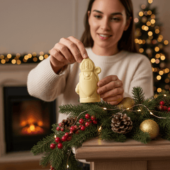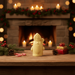 Célébrez la saison avec le chocolat blanc Saint Nicolas de 150 g, fabriqué à la main à Bruxelles, pour une gâterie festive onctueuse et indulgente.