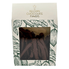 150 g di scorze di limone candite artigianali immerse nel cioccolato prodotto a Bruxelles con scorze di cedro candito e ricche fave di cacao provenienti dalle Filippine, delicatamente ricoperte da un morbido cioccolato belga.