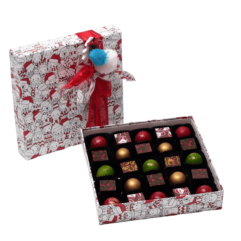 Celebrate le feste con la nostra confezione natalizia di 25 praline belghe, un elegante assortimento di cioccolatini artigianali realizzati con cacao di prima qualità, perfetti da regalare o per condividere dolci momenti di festa con i propri cari.