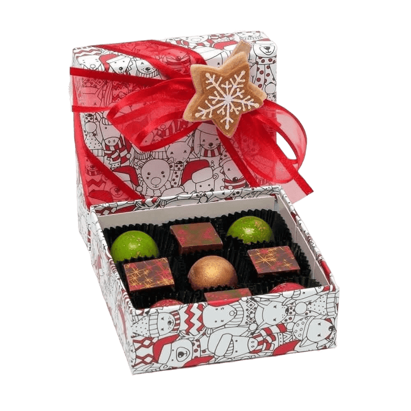 Celebrate le feste con la nostra confezione natalizia di 9 praline belghe, un elegante assortimento di cioccolatini artigianali realizzati con cacao di prima qualità, perfetti da regalare o per condividere dolci momenti di festa con i propri cari.