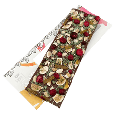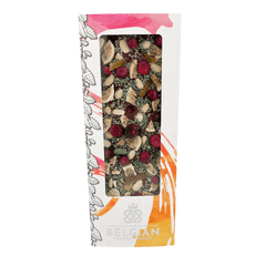Scoprite le nostre tavolette di cioccolato belga Fantasy da 375 g, preparate a mano con una deliziosa miscela di fichi, mirtilli rossi, mandorle, limoni e pistacchi. Una delizia extra-large, perfetta da regalare o da regalarsi