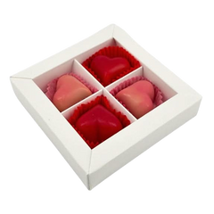 Innamoratevi della nostra confezione d'amore di 4 praline belghe (50g), un'elegante selezione di cioccolatini fatti a mano e lavorati bean-to-bar a Bruxelles. Il regalo romantico perfetto che unisce passione, sapore e cacao etico.
