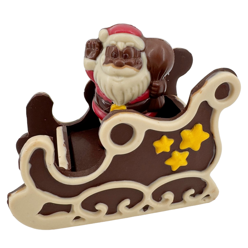 Festeggiate il Natale con il nostro Babbo Natale artigianale di cioccolato fondente in slitta (180g) . Prodotto a Bruxelles con cioccolato sostenibile ed etico e dettagli festosi, un delizioso dolcetto belga per le festività natalizie.