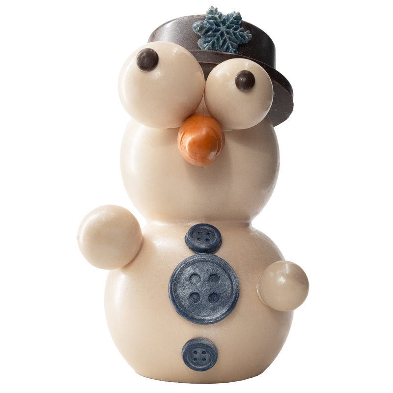 Celebrate le festività con il nostro pupazzo di neve 3D realizzato a mano in cremoso cioccolato bianco, prodotto a Bruxelles con puro burro di cacao. Un festoso centrotavola da 650 g, perfetto per essere regalato o condiviso.