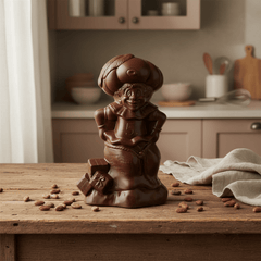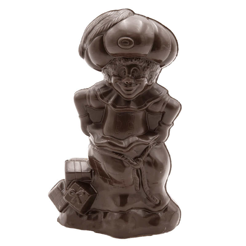 Ontdek Père Fouettard (Metgezel van Sinterklaas) in een handgemaakte Belgische pure chocoladefiguur (230g). Gemaakt in Brussel van ethische, traceerbare cacao, een speels eerbetoon aan de Belgische kersttraditie en Sinterklaasfolklore.