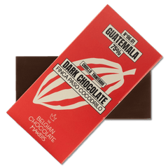 Guatemala Finca Paso Cocodrilo 75% pure chocolade, een exclusieve creatie van één enkele origine, met de hand gemaakt in Brussel. Een verfijnde reep met een elegante fruitige diepte en een uitzonderlijk terroir.