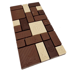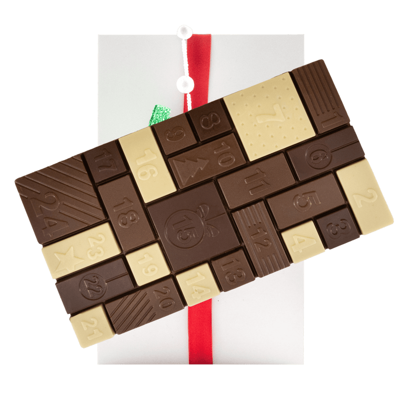 Tel af naar Kerstmis met onze melkchocolade adventskalenderreep 200g, een feestelijke Belgische creatie die romige melkchocolade combineert met een vrolijk feestdagenontwerp, perfect om de magie van elke dag voor Kerstmis te delen.