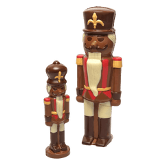 Vier Kerstmis met onze handgemaakte Notenkraker soldaten in rijke melkchocolade, gemaakt in Brussel met eersteklas cacao uit Haïti. Een feestelijk 1230g middenstuk vol traditie en smaak.
