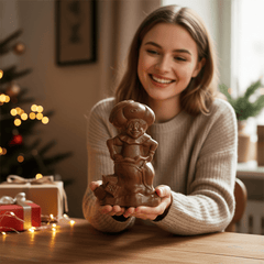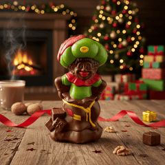 Ontdek Père Fouettard (Metgezel van Sinterklaas) in een handgemaakt Belgisch melkchocoladefiguurtje (230g). Gemaakt in Brussel van ethische, traceerbare cacao, een speels eerbetoon aan de Belgische kersttraditie en Sinterklaasfolklore.