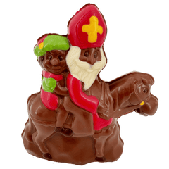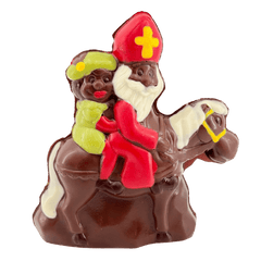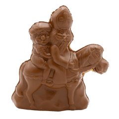 Ervaar de magie van onze 230g melkchocolade Sint op zijn paard, handgemaakt in België van rijke, eersteklas cacao, een majestueuze feestelijke creatie vol traditie en smaak.