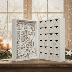 Tel af naar Kerstmis met ons herbruikbare houten verlichte adventskalenderboek ! Achter elk venster verbergt zich een heerlijk handgemaakt Belgisch chocoladefiguurtje. Een charmant aandenken om jaar na jaar van te genieten.