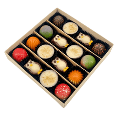Discover our autumn chocolate praline box, 16 handcrafted Belgian chocolates in an elegant craft gift box. Perfect for seasonal gifting or indulgence.