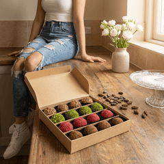 Enjoy our mix of autumn Belgian truffles in a craft gift box. Handcrafted in Brussels, this seasonal assortment combines rich cacao with gourmet flavors, an elegant gift or indulgence.