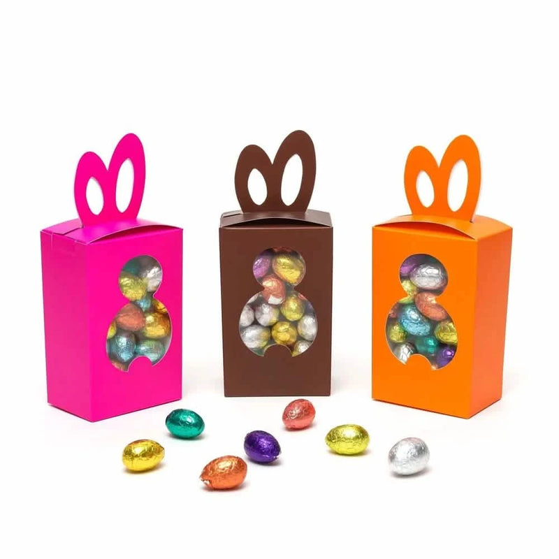 Enjoy Easter with a festive bag of 20 Belgian chocolate eggs and a cute chocolate bunny. Handmade in Brussels with ethical cacao, perfect for gifting or sharing
