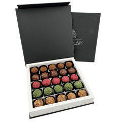 Indulge in our box of 25 Belgian chocolate truffles in mixed flavours, crafted in Brussels with ethical cacao. A refined gift or gourmet delight to share.