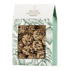 Crunch into our handmade chocolate clusters with whole hazelnuts. A 160g Belgian specialty crafted in Brussels, perfect as a gourmet gift or indulgent treat.