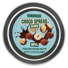 Enjoy our Vegan Chocolate Spread 250 g, handcrafted in Brussels with pure cacao and plant-based ingredients. Smooth, rich, and 100% dairy-free indulgence. 50% of Italian hazelnuts inside