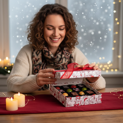 Celebrate the holidays with our Christmas box of 16 Belgian pralines, an elegant assortment of handcrafted chocolates made with premium cacao, perfect for gifting or sharing sweet festive moments with loved ones.
