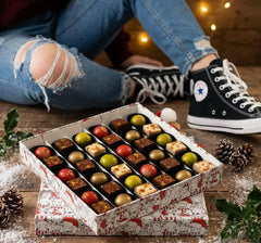 Celebrate the holidays with our Christmas box of 36 Belgian pralines, an elegant assortment of handcrafted chocolates made with premium cacao, perfect for gifting or sharing sweet festive moments with loved ones.