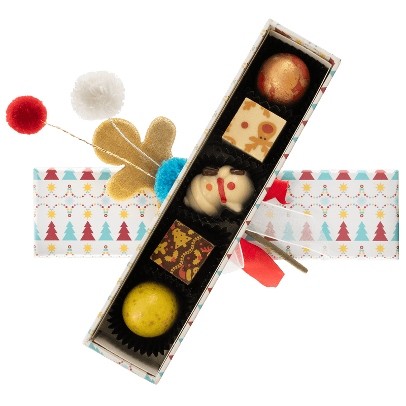 Meet our Christmas box My Bear Friend with 5 handcrafted Belgian pralines (75g) presented in a charming festive gift box. A perfect blend of tradition, creativity, and indulgence to share the magic of Christmas.
