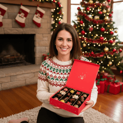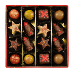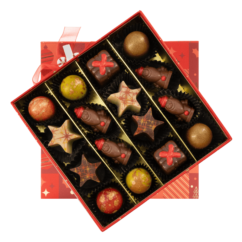 Share the joy of Christmas with our Ho-Ho-Ho chocolate box, filled with 16 handcrafted Belgian pralines (240g). A festive assortment made with ethical cacao and artisanal passion in Brussels.