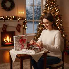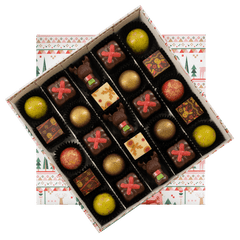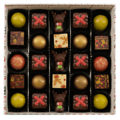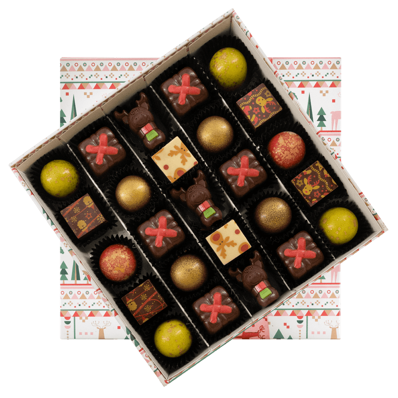 Step into the magic of our Christmas winter wonderland box with 25 handcrafted Belgian pralines (375g). A festive, elegant selection of bean-to-bar creations, perfect for gifting and celebrating the season in true Belgian chocolate style. ☃️