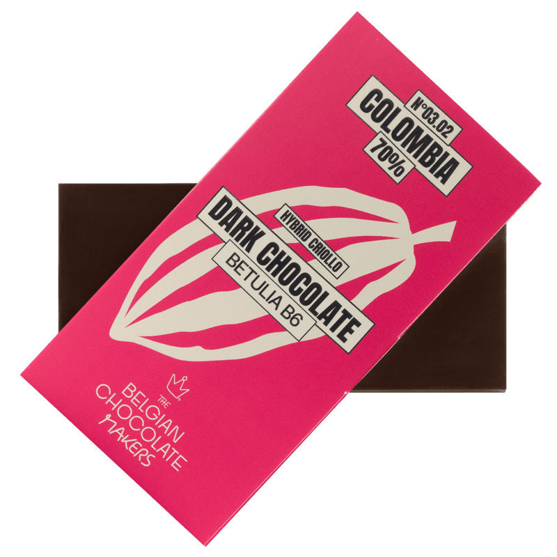 Discover our Colombia Betulia B6 70% dark chocolate, handcrafted in Brussels from rare Criollo cacao. A single-origin bar with complex fruity and floral notes.