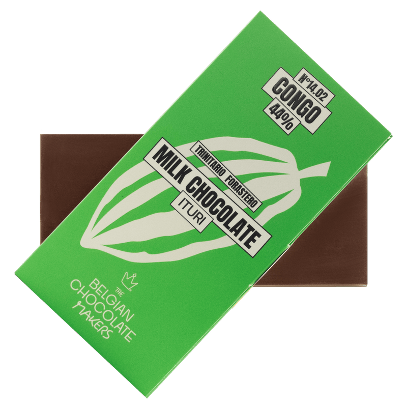 Congo Ituri 44% milk chocolate, handcrafted in Brussels from single-origin cacao. A smooth and creamy bar with delicate notes and ethical sourcing.