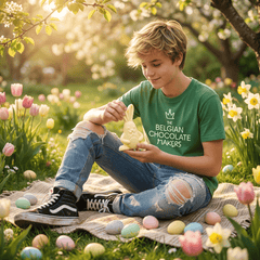 Made with high-quality ingredients and traditional Belgian chocolate craftsmanship, this cool white chocolate rabbit combines creativity, elegance, and the irresistible taste of premium Belgian chocolate.