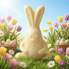 Handcrafted by artisan chocolatiers, this 170g white chocolate Easter bunny offers a silky texture and a rich, milky flavor that melts beautifully in the mouth. Its unique and modern style makes it ideal for Easter baskets, festive table displays, or a delightful seasonal gift.