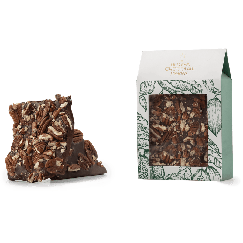 Ingredients: Cocoa mass, sugar, roasted pecan nuts, cocoa butter, sunflower lecithin.