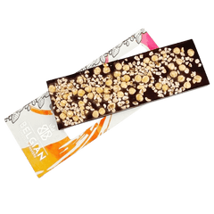 Indulge in our Fantasy dark chocolate bar 375g, loaded with crunchy Piedmont hazelnut chunks. A gourmet oversized Belgian creation, perfect for gifting or sharing.
