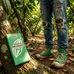 Discover our 70% dark chocolate bar crafted from fine cacao grown in Bahia, Brazil, under the Cabruca agroforestry system.