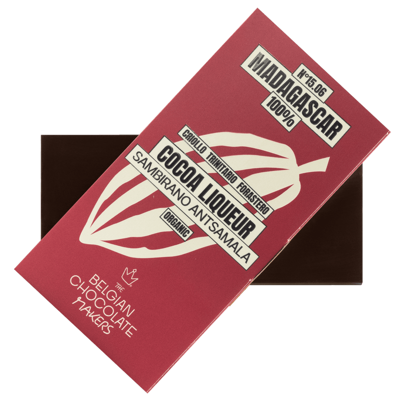 Experience our Madagascar 100% cacao liqueur bar, handcrafted in Brussels. An intense single-origin creation with bold flavour and pure elegance.