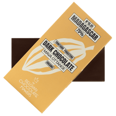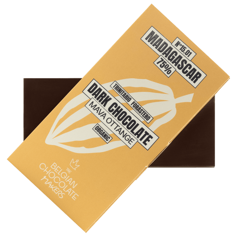 Madagascar Mava Ottange 75% dark chocolate, handcrafted in Brussels from single-origin cacao. A refined bar with bright fruity notes and elegant complexity.
