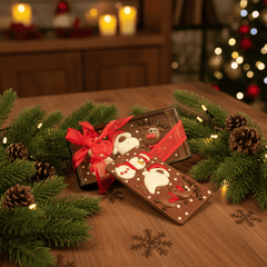 Delight in our milk chocolate Christmas friends bar 100g, a festive treat crafted from smooth Belgian milk chocolate and wrapped in a joyful holiday design. Perfect as a gift or to share sweet moments this Christmas.