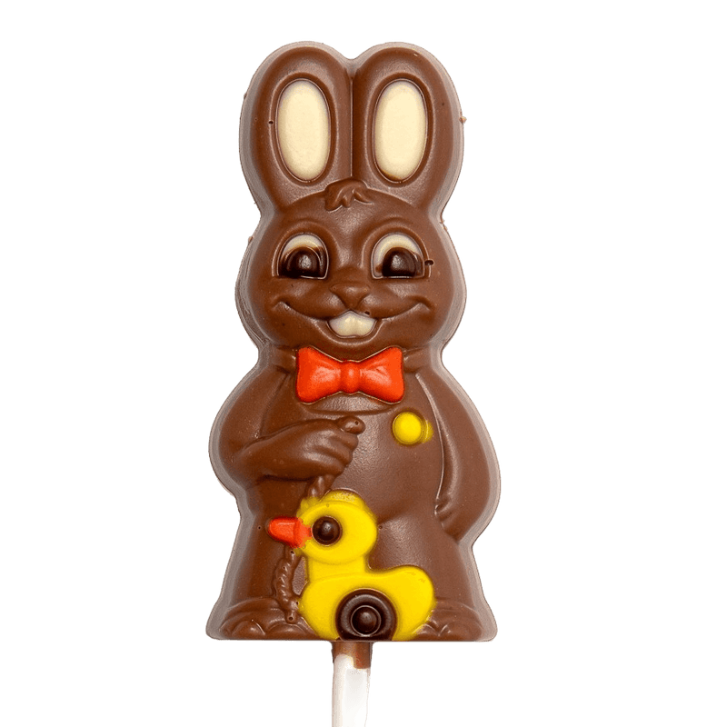 Celebrate sweetness with our milk chocolate bunny with duck lollipop 20g, an adorable Belgian creation made from smooth, creamy milk chocolate. 🐰🦆🍭 Perfect for Easter gifts, party favors, or a cheerful chocolate treat!
