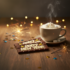 Ring in the New Year with our milk chocolate messaging bar “HAPPY NEW YEAR” 45 g, handcrafted in Brussels by certified artisan chocolatiers. Made from smooth, ethical, and traceable cacao, a festive Belgian chocolate gift to start the year sweetly.