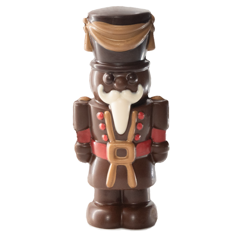 Celebrate the holidays with our handcrafted Christmas nutcracker soldier in smooth milk chocolate, made in Brussels with fine cocoa from Haiti. A festive 220g treat to share or gift.