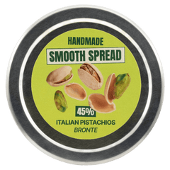 Delicious handmade Pistachio Spread 250 g, crafted in Brussels with 45% Bronte DOP fresh pistachios. A rich, authentic Italian flavor in every spoonful.