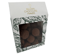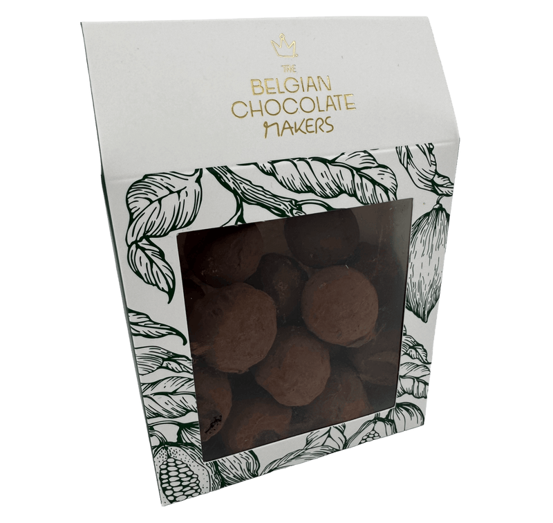 Indulge in our 160g pouch of Belgian cacao truffles. Handcrafted in Brussels with pure chocolate intensity, a rich and velvety treat for true chocolate lovers.