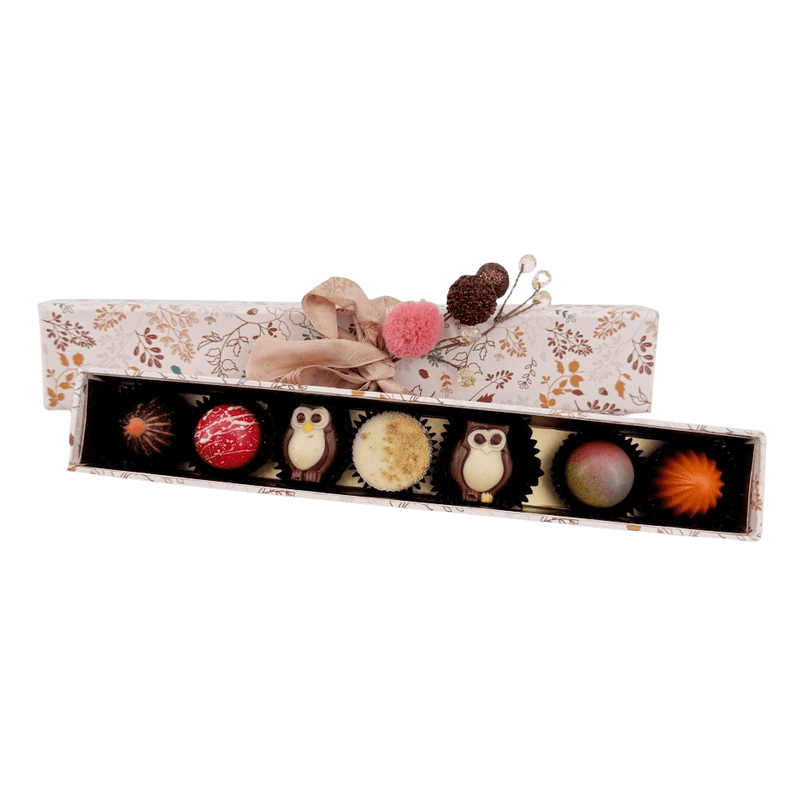 Discover our warm shadow pralines 105g, handcrafted Belgian chocolates with rich seasonal flavors. A gourmet gift box, perfect for sharing or indulgence.